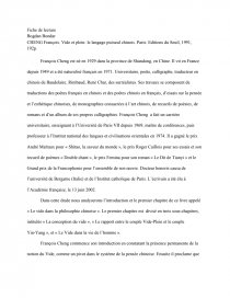 Pour conclure nous pouvons constater que le livre du François Cheng Vide et plein est bien écrit, avec une structure assez difficile à cause de la traduction des termes du